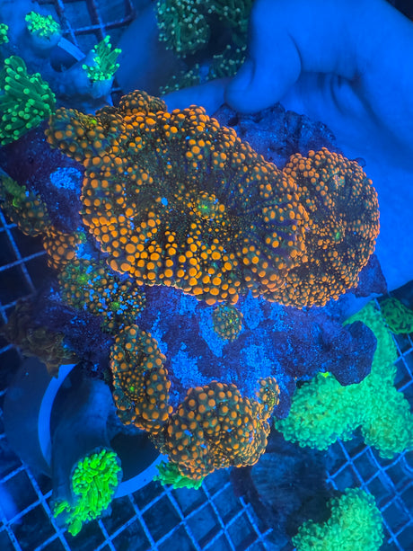 Sale price $46.00 Regular price $69.00Unit price /UnavailableVery low stock (1 unit)Orange Oxide Zoanthid Frag (4+ Polyp)