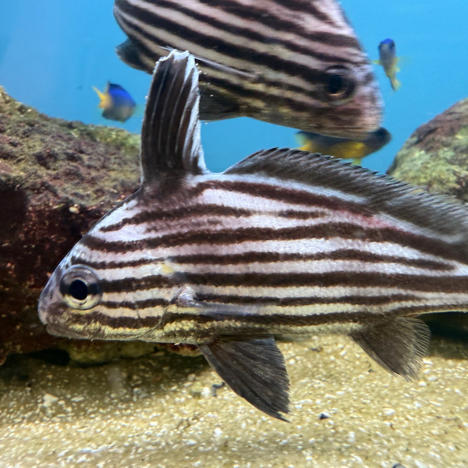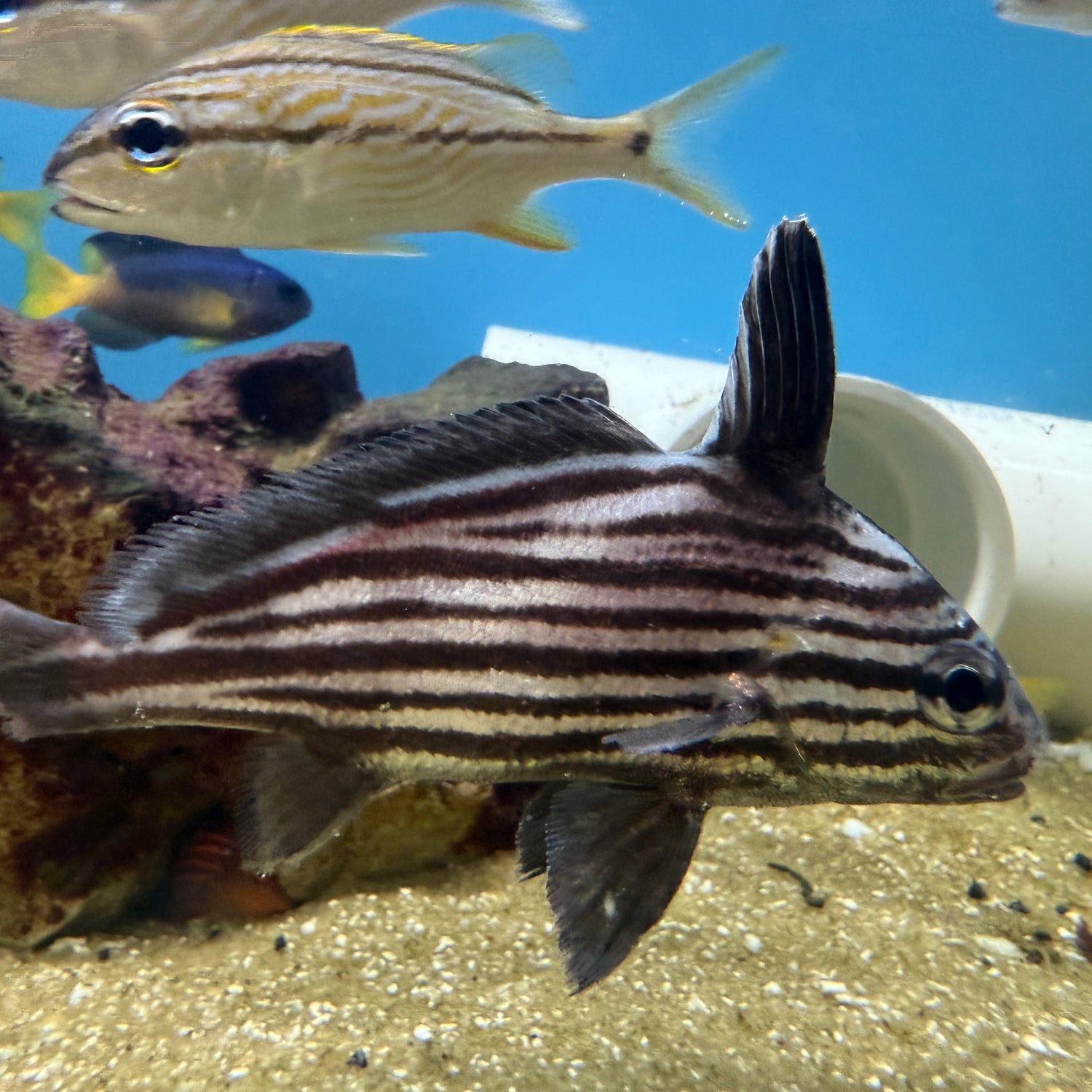 High hat drum an interesting oddball we get in from time to time. Currently around 3in peaceful and generally reef safe.