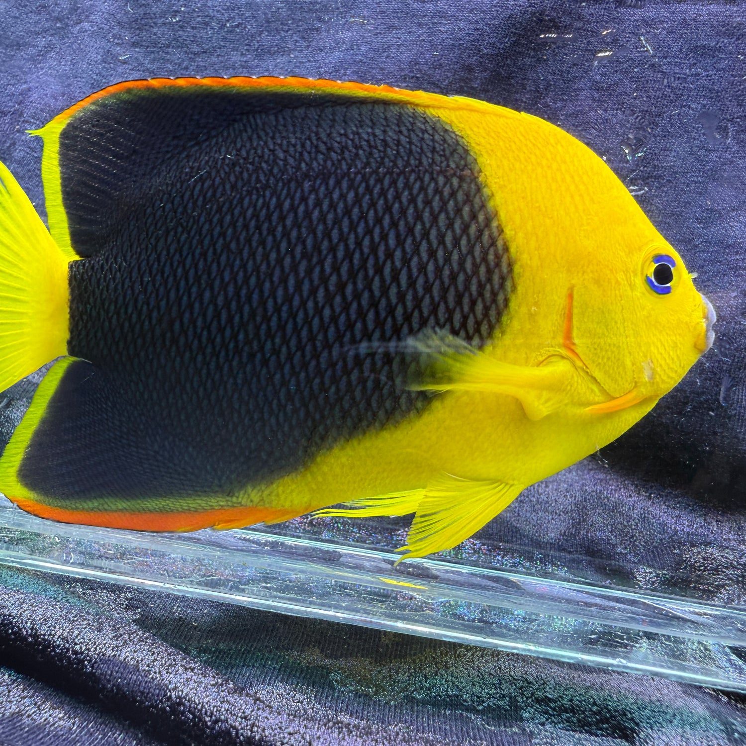 The Rock Beauty Angelfish (Holacanthus tricolor) is one of the most striking saltwater fish found throughout the tropical western Atlantic Ocean and the Caribbean Sea. Known for its vivid coloration—bright yellow on the front half of its body blending into deep black toward the tail—this angelfish is a true standout in any marine aquarium. Reaching up to 8–10 inches in length, the Rock Beauty thrives in reef environments rich in coral, sponges, and rocky crevices. In the wild, it feeds primarily on sponges and algae, making it essential for aquarists to provide a diet that replicates its natural nutrition.