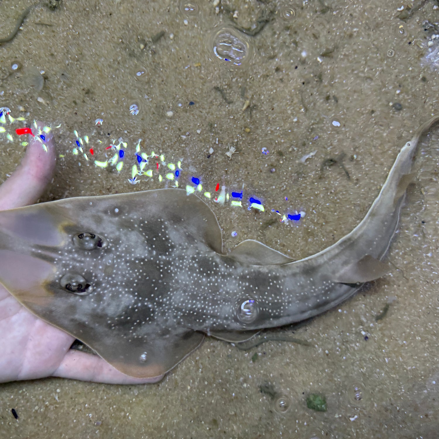 Around 14 inch Atlantic guitarfish.